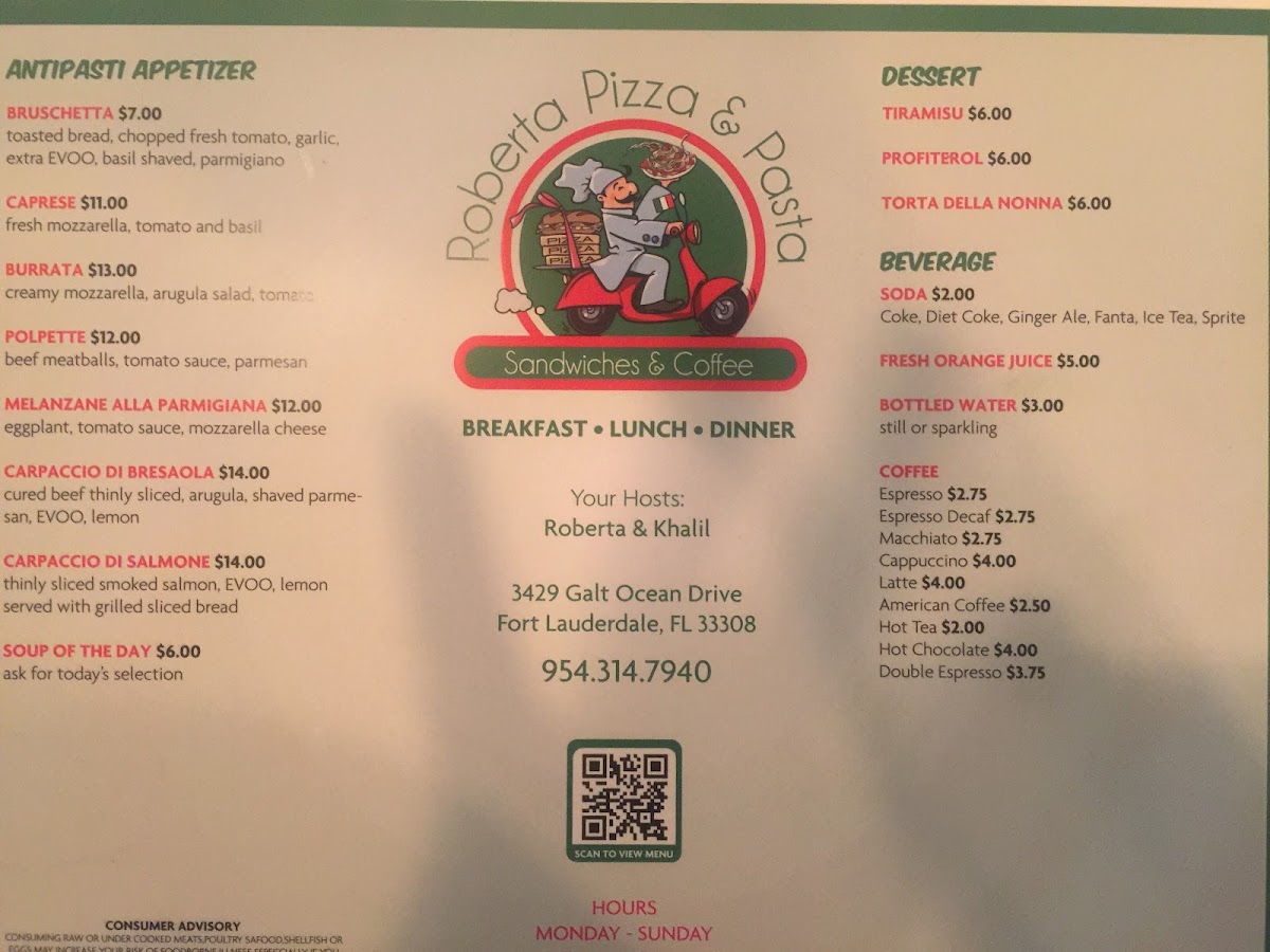 Welcome to Roberta Pizza & Pasta, a charming gem located at 3429 Galt Ocean Dr in Fort Lauderdale. This family-owned restaurant is the perfect haven for authentic Italian cuisine lovers. Owners Roberta and her husband create an atmosphere that feels like home, complete with a genuine smile and heartfelt service.